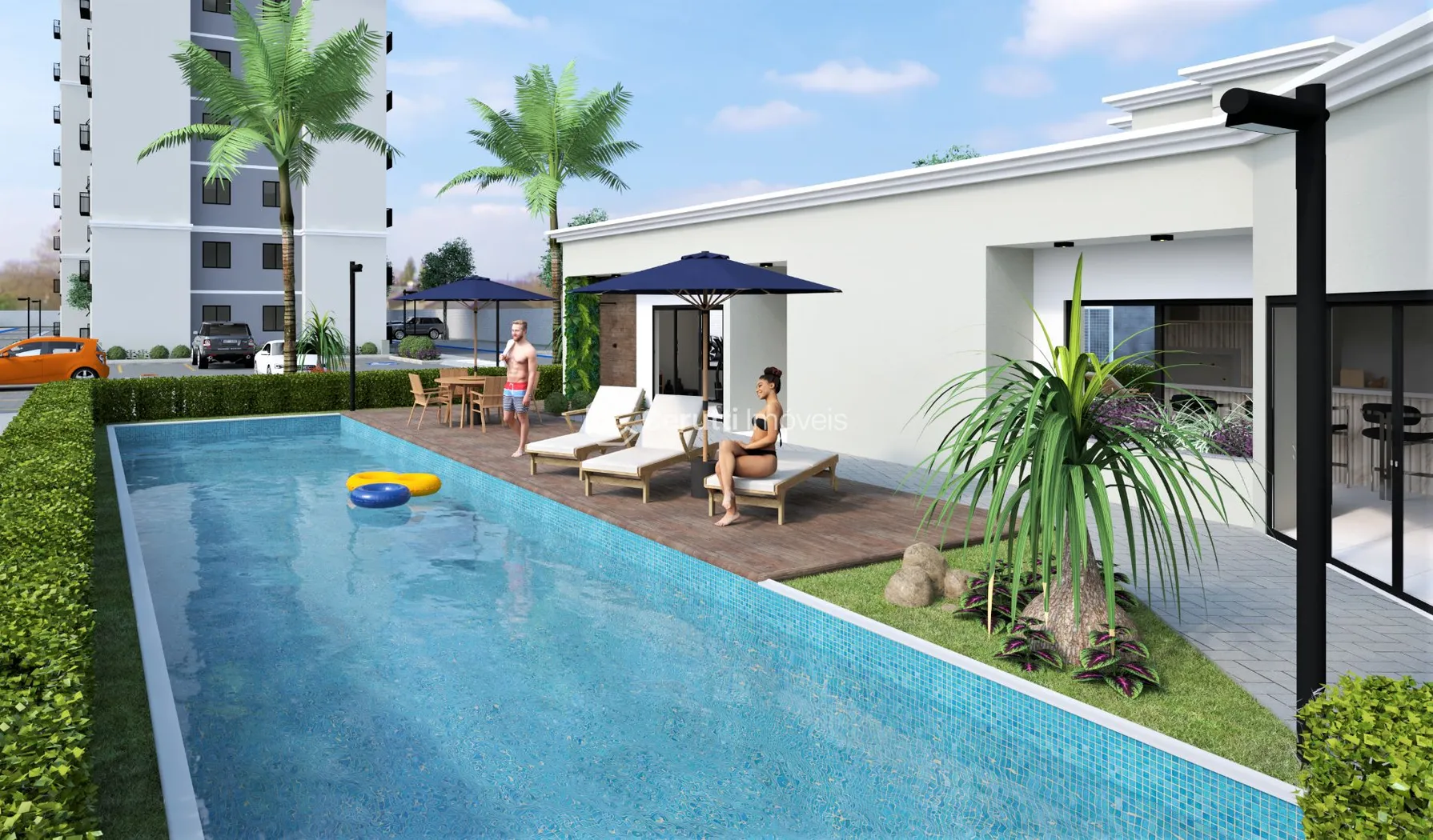 - Piscinas cintilantes para momentos de relaxamento.