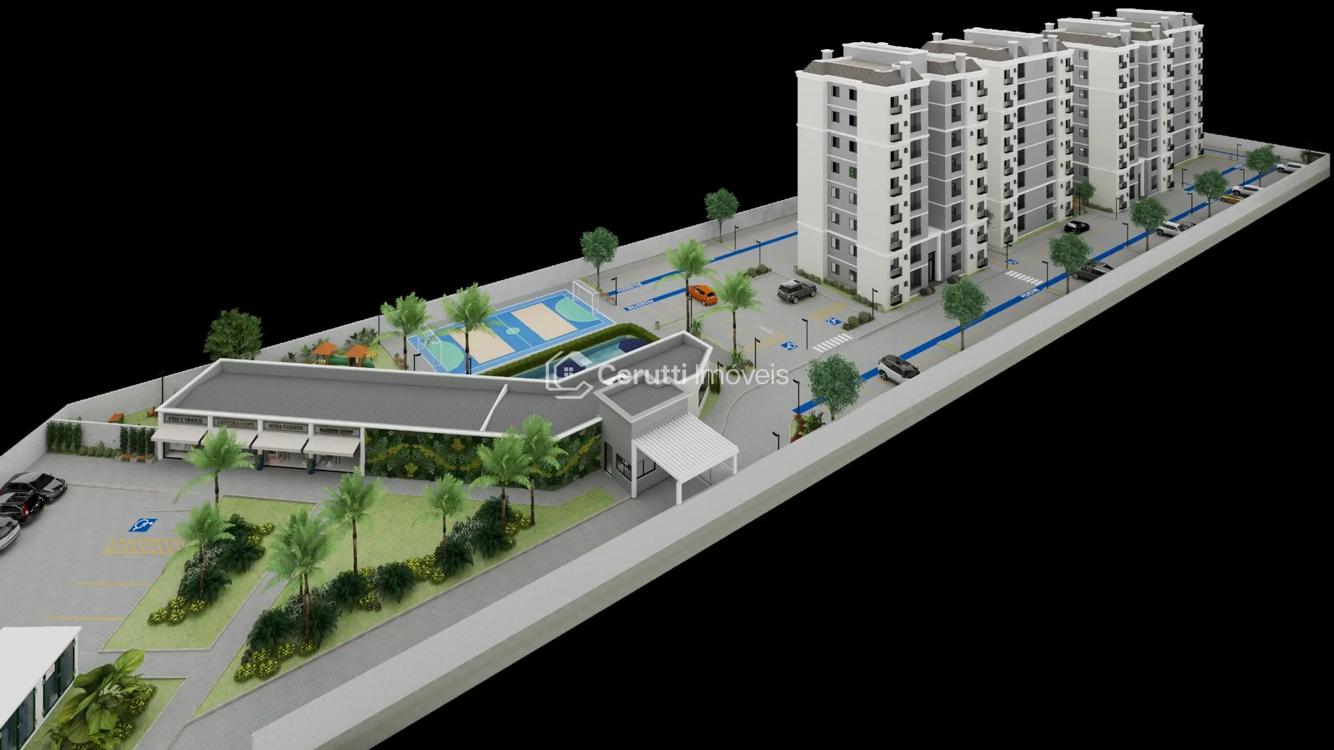 - Quadras esportivas para manter a forma e a paixão por esportes.