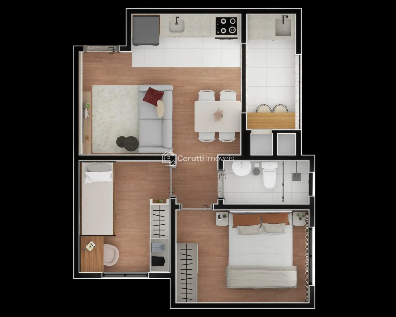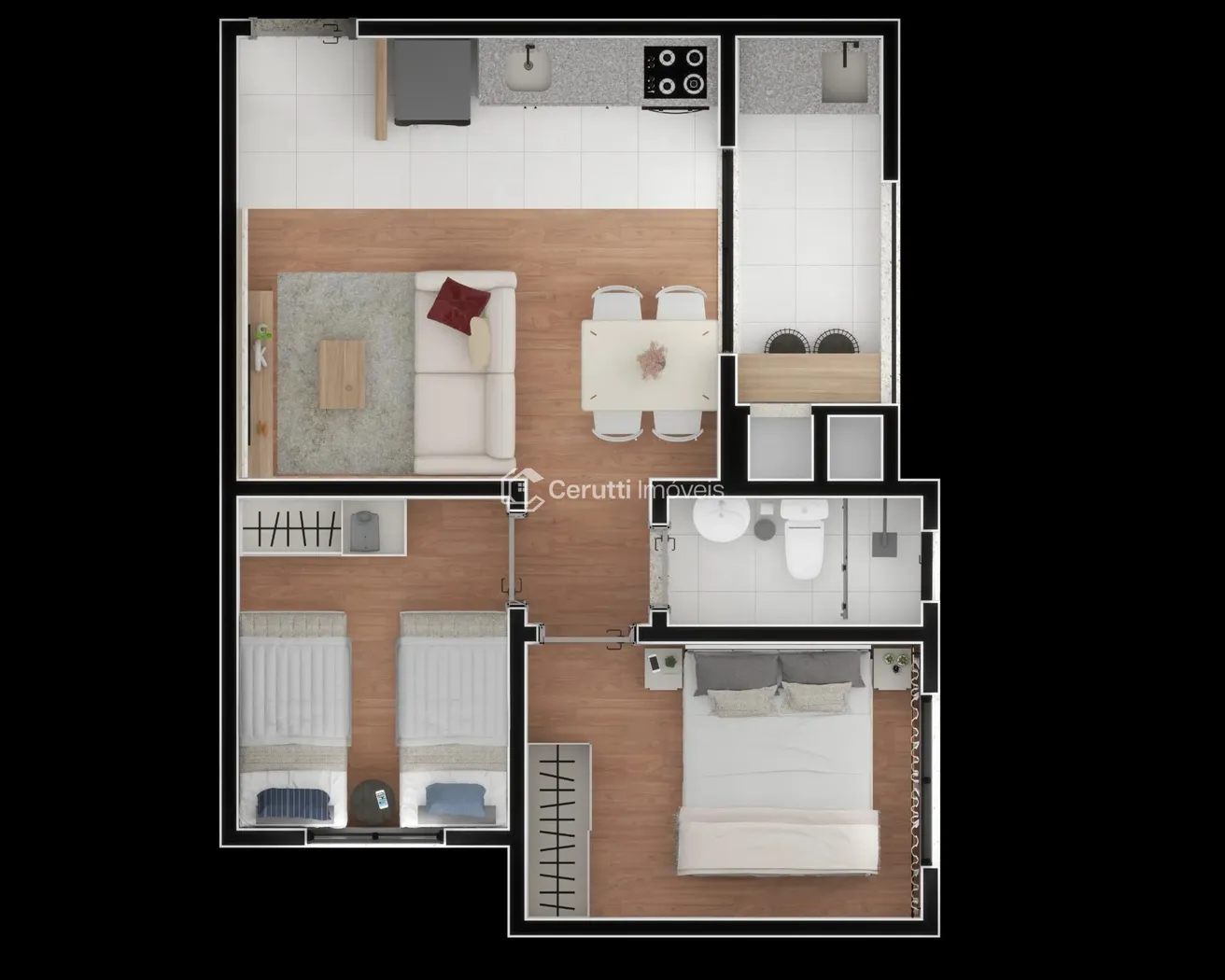 2 Dormitórios: Espaços inteligentemente projetados para o seu conforto e privacidade.