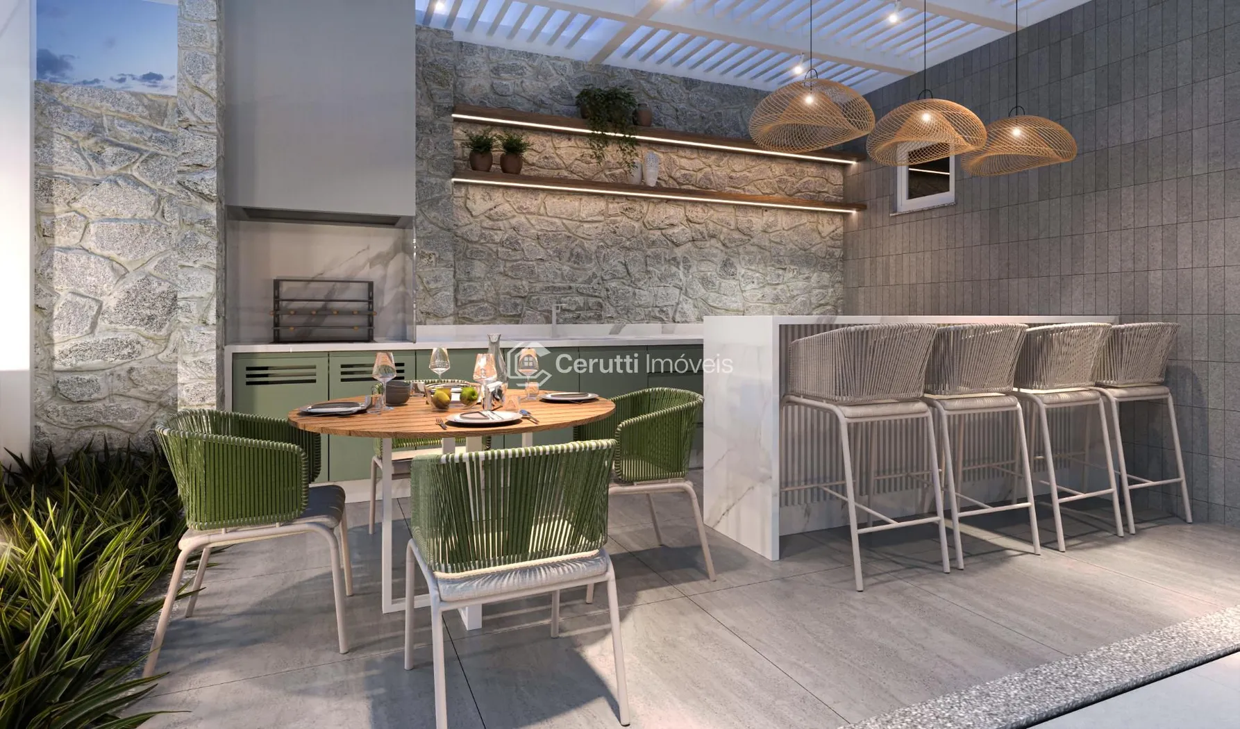 - Sacada gourmet com churrasqueira a carvão, ideal para momentos de confraternização.
