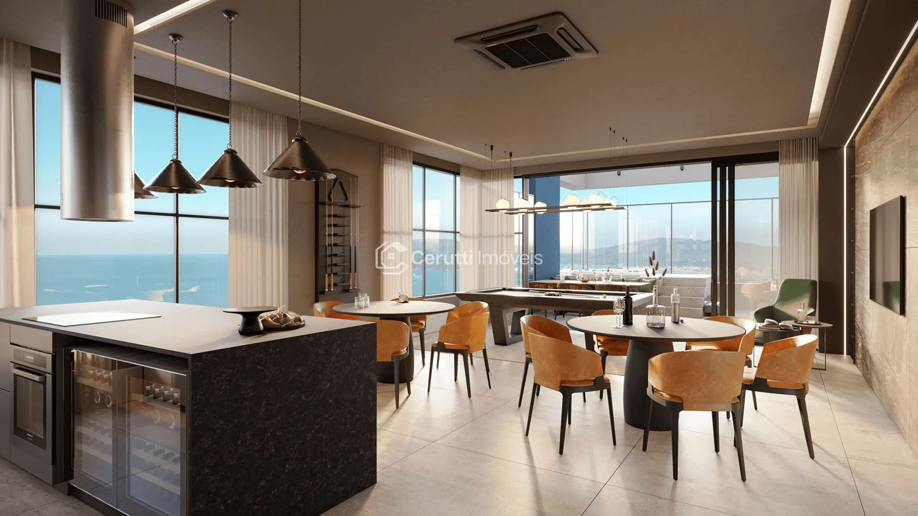 - Integração perfeita: Sala, cozinha e sacada formam um living harmonioso.