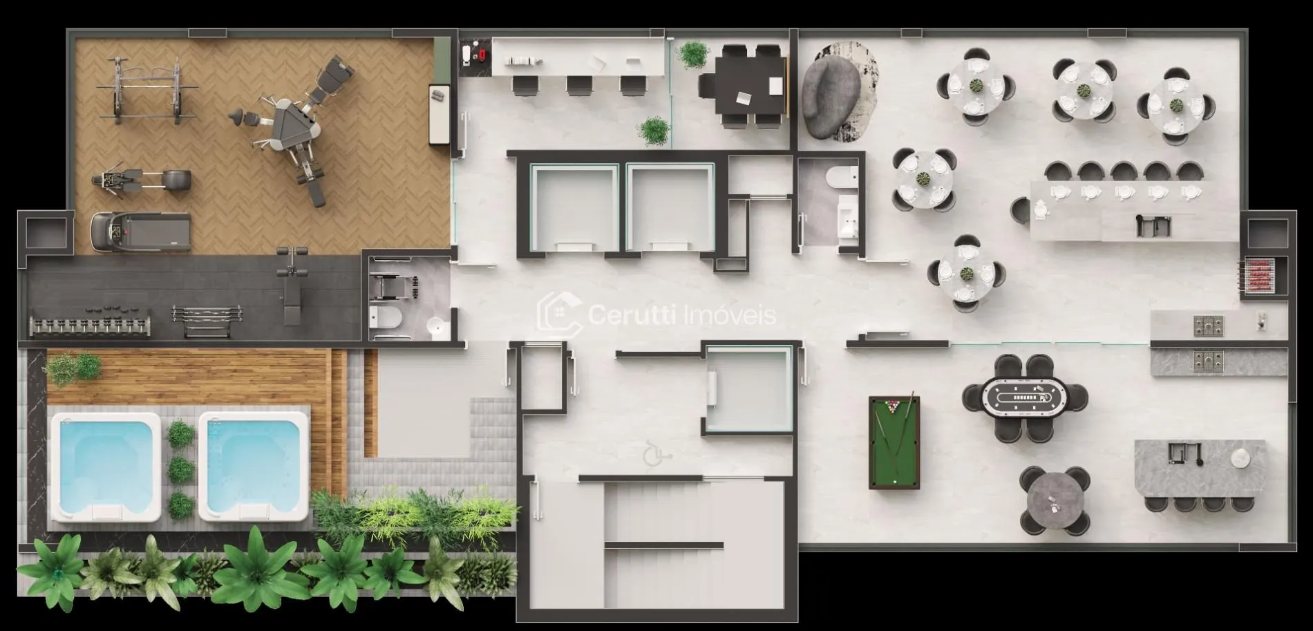 - Acabamento Premium: Porcelanato de ponta em todos os ambientes sociais e rebaixamento em gesso, garantindo uma estética moderna e impecável.