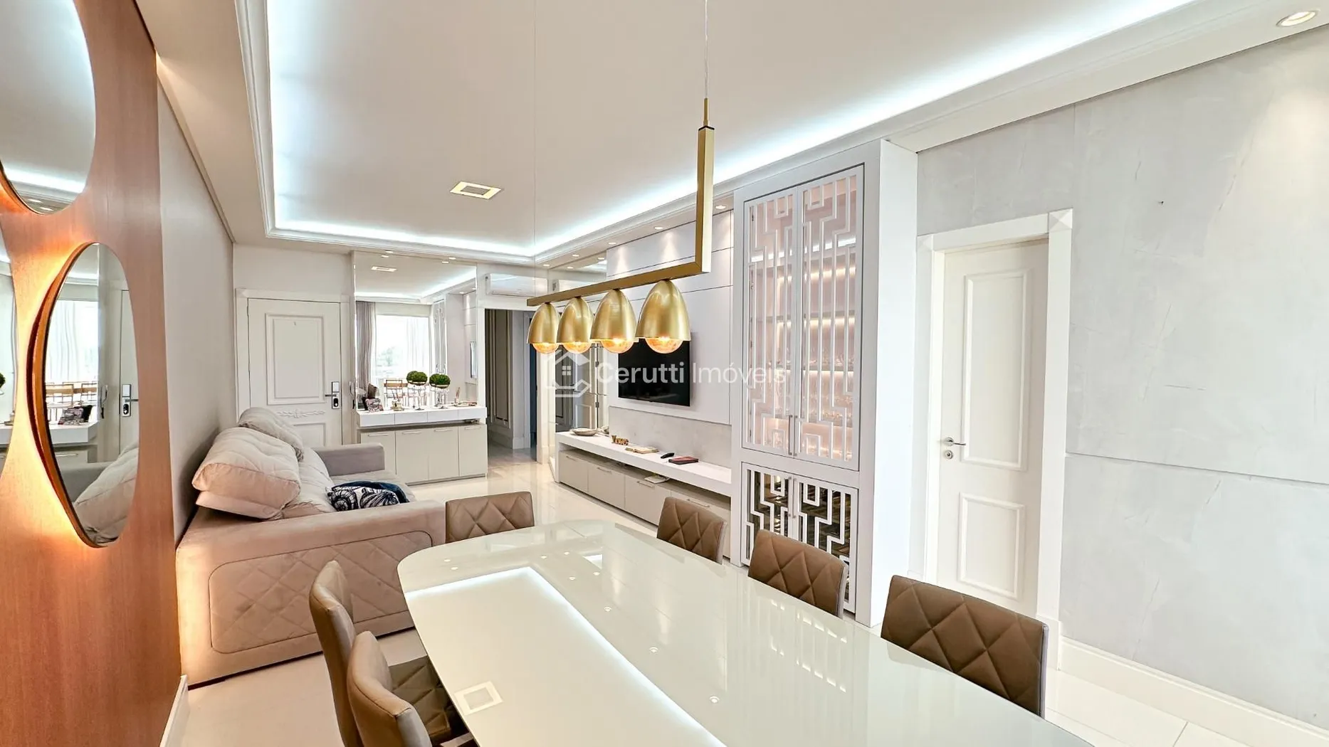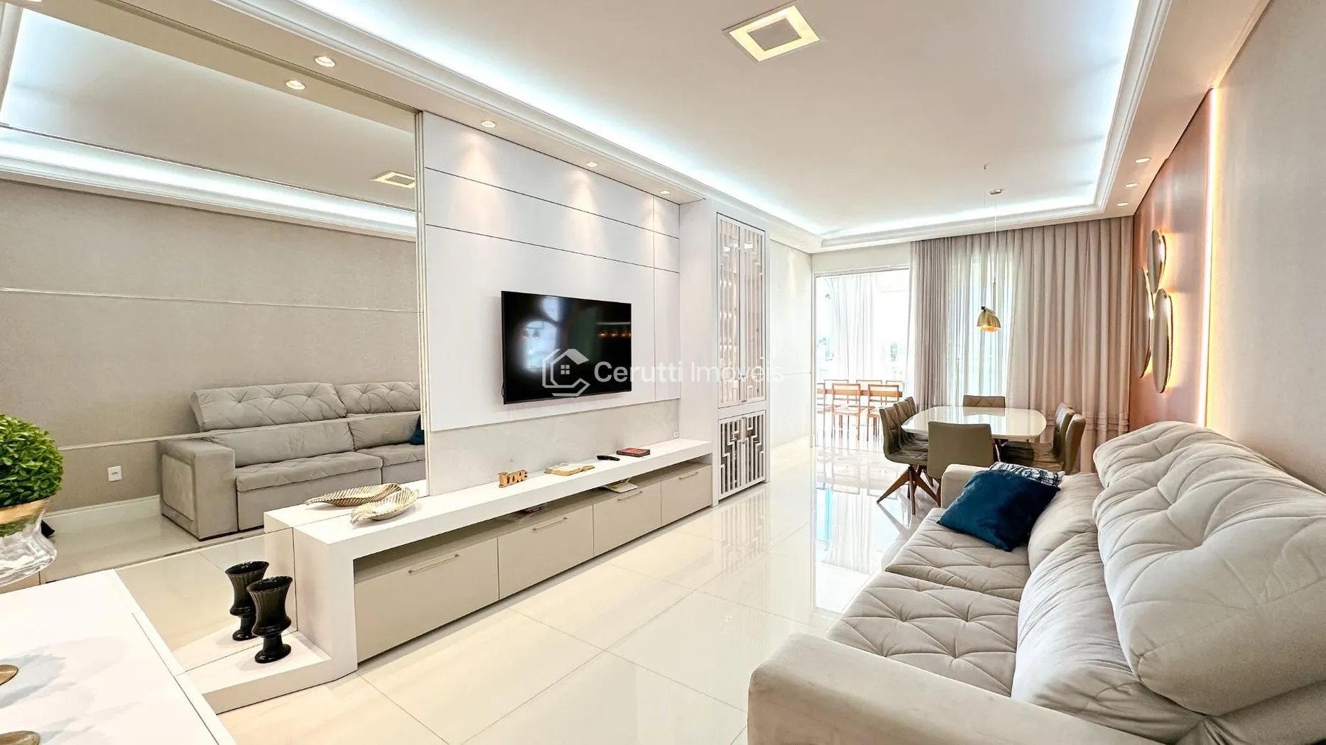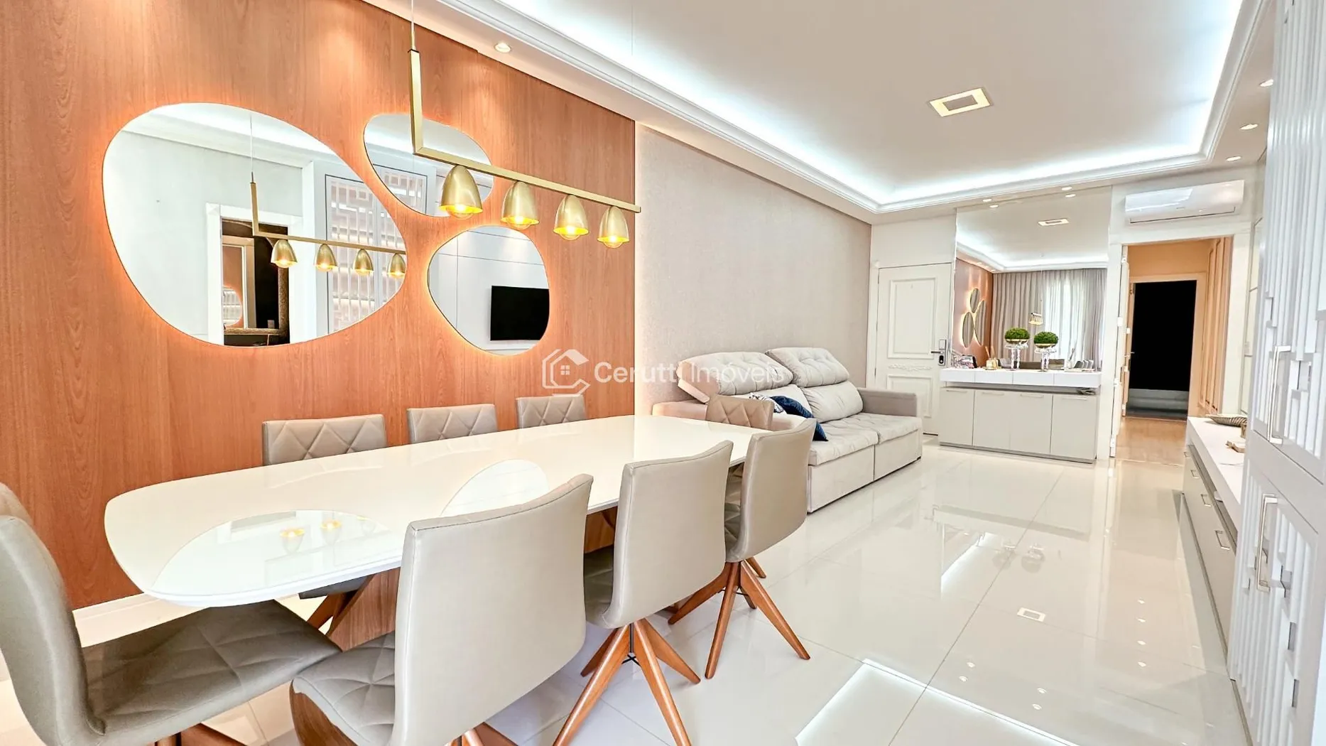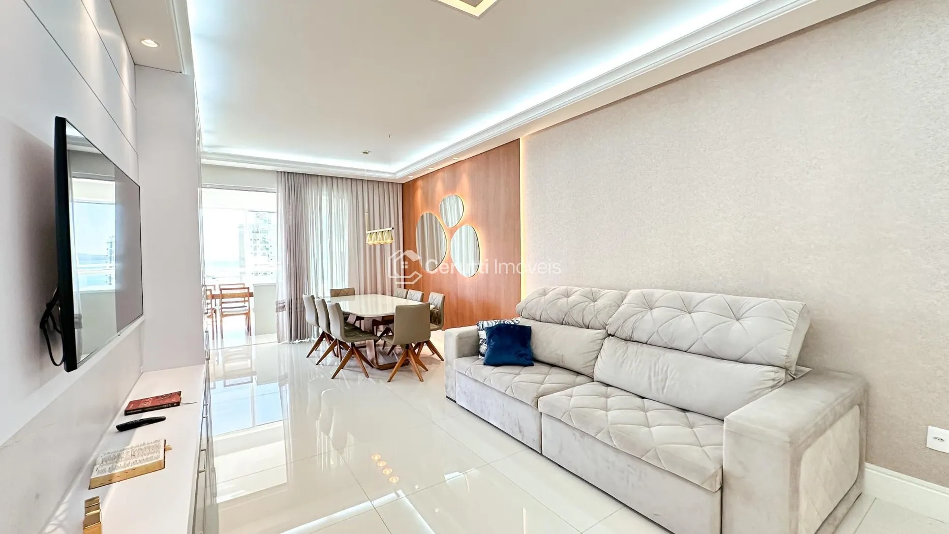 - Sala de estar e jantar integradas, criando um ambiente moderno e acolhedor