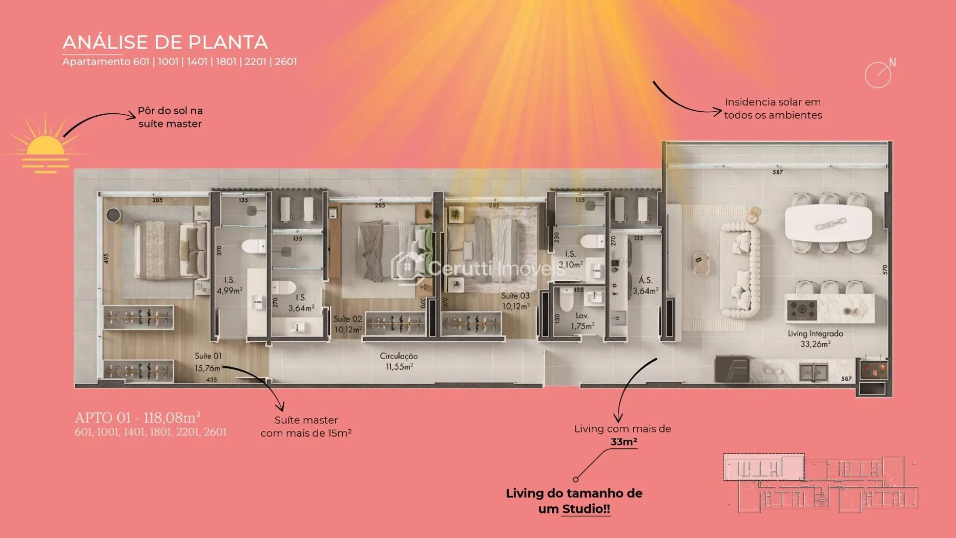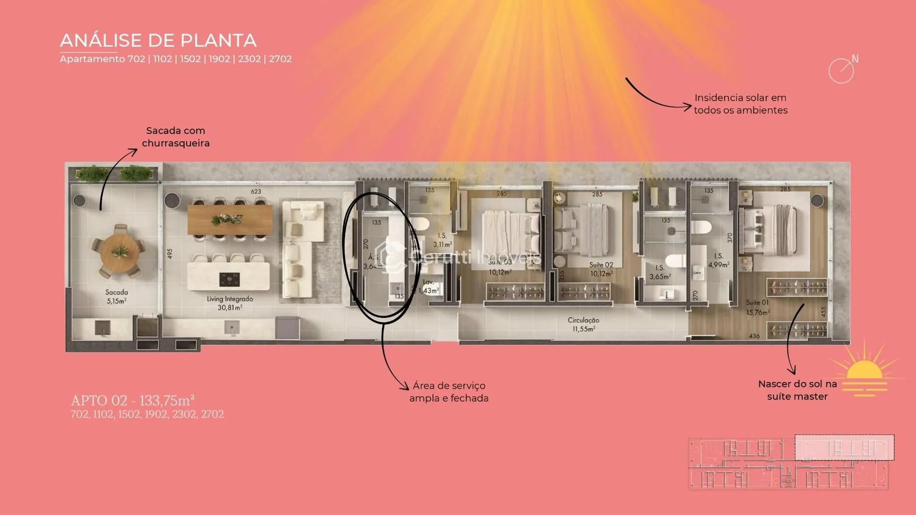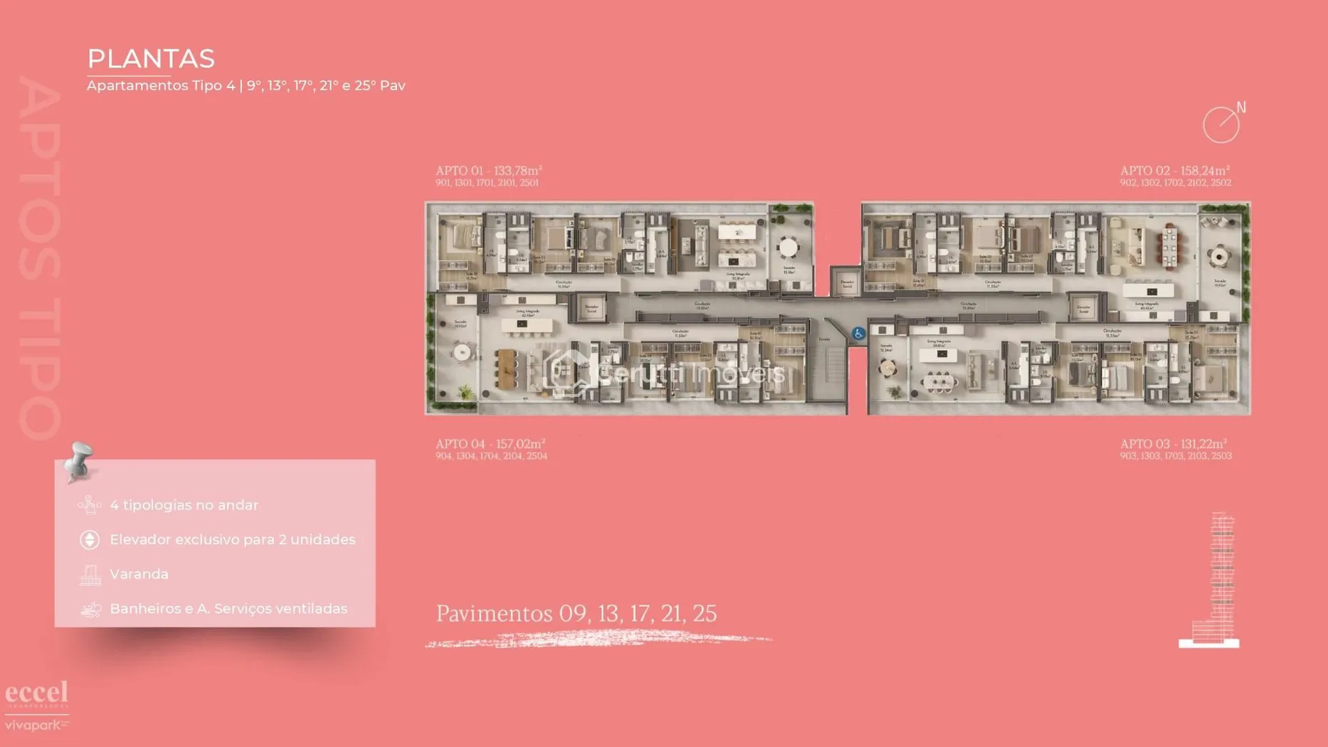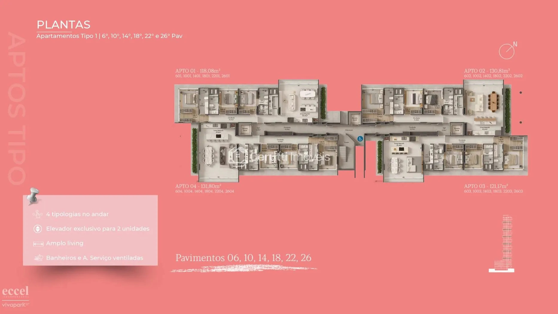 - Armário Privativo (por apartamento): Espaço planejado para organização impecável.