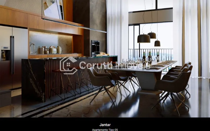 - Ambientes Integrados: Cozinha, sala de estar e jantar em um conceito aberto e fluido, promovendo a convivência harmoniosa.
