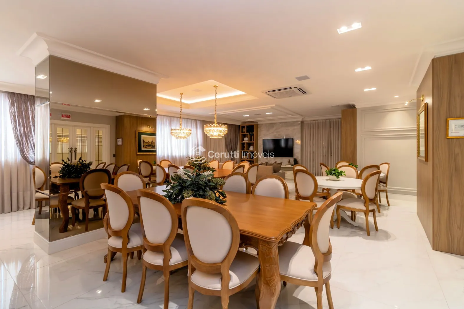 - Salão de festas decorado com requinte, para suas celebrações inesquecíveis.