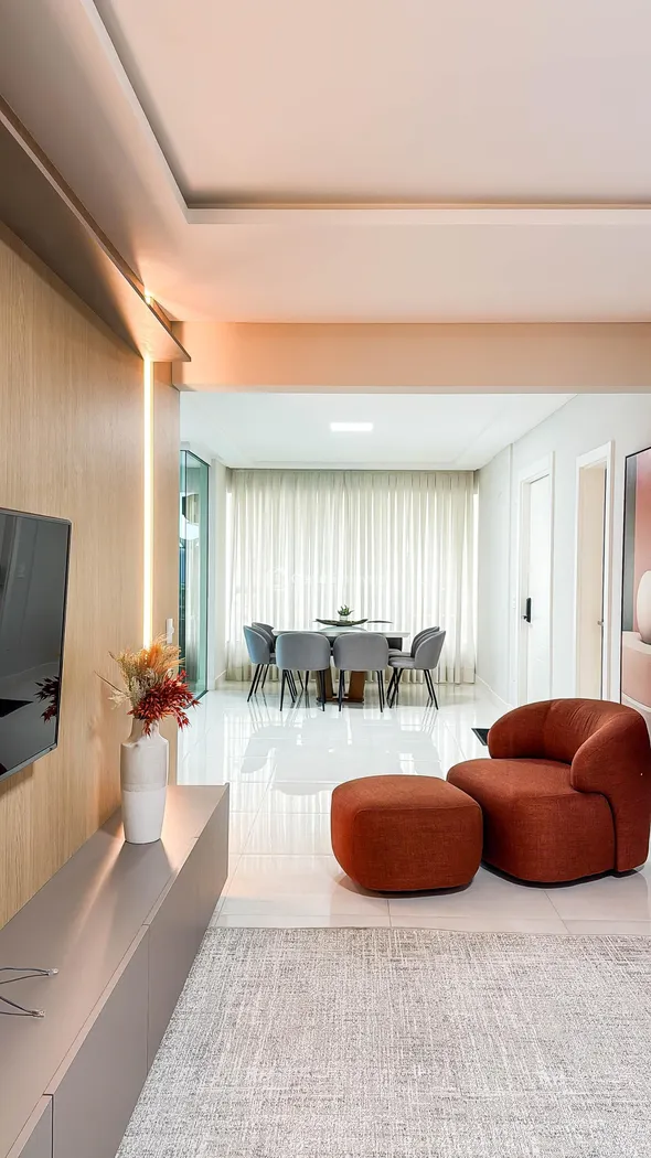 - Harmonia Social: O coração do lar reside no living integrado, um ambiente fluidez que une sala de estar, jantar e cozinha, criando um espaço amplo, luminoso e perfeitamente adaptado para momentos de convivência memorável.