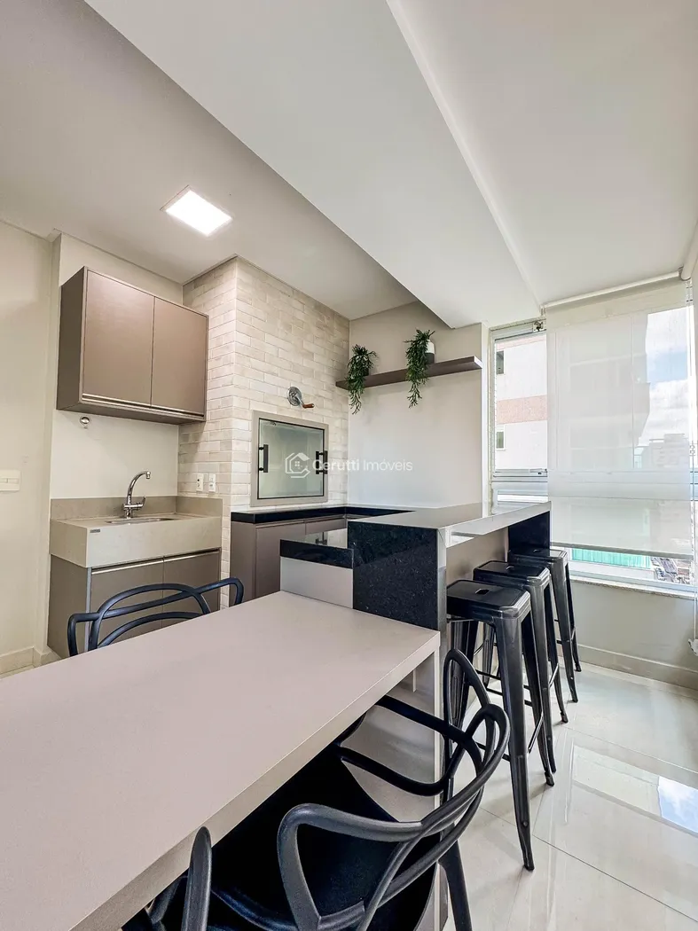 - Varanda Gourmet Exclusiva: A sacada gourmet com churrasqueira a carvão é o destaque, um cenário perfeito para confraternizações, refeições ao ar livre e para desfrutar da brisa revigorante de Meia Praia.