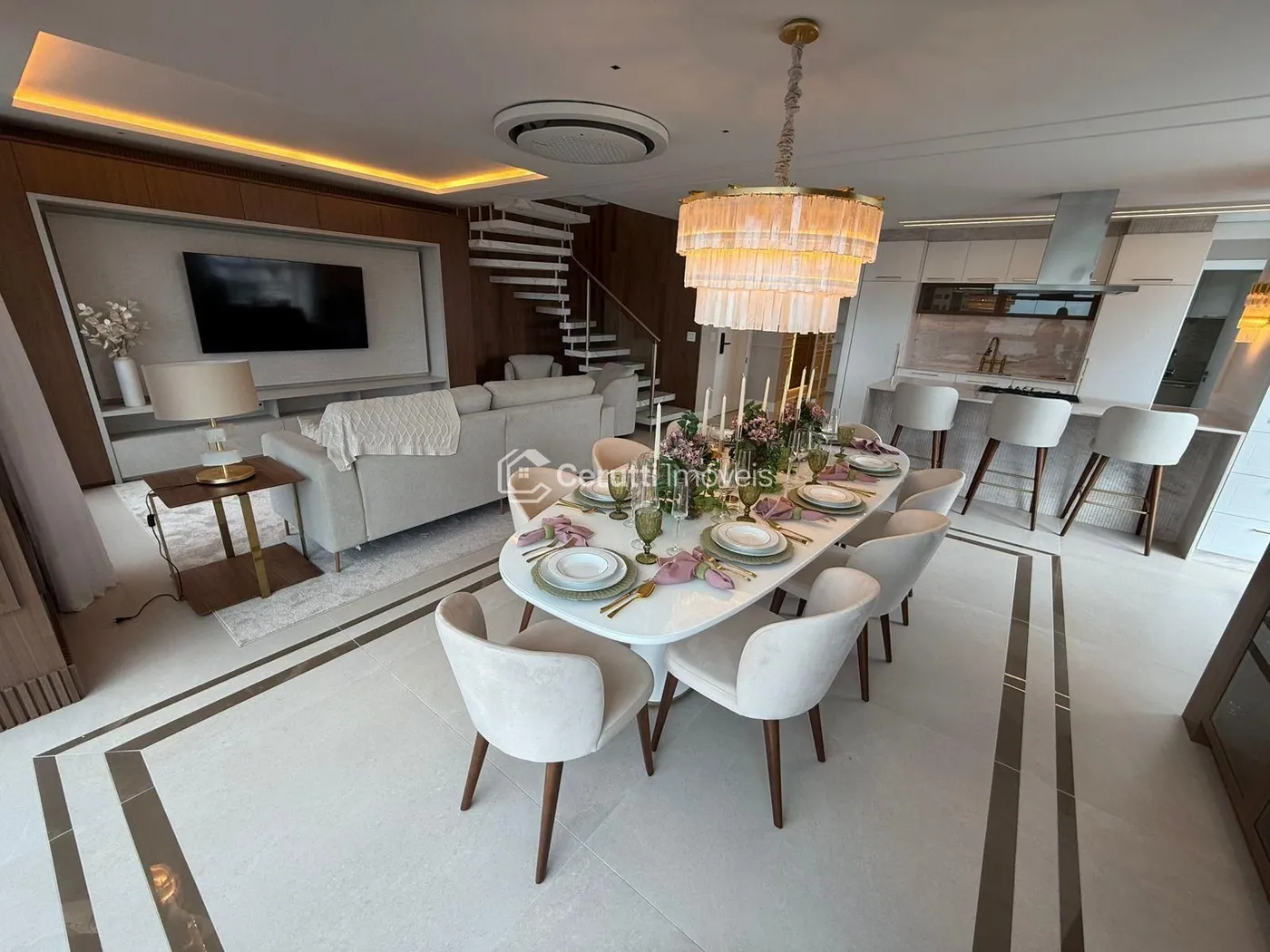 - Amplo living integrado com sala de estar e jantar