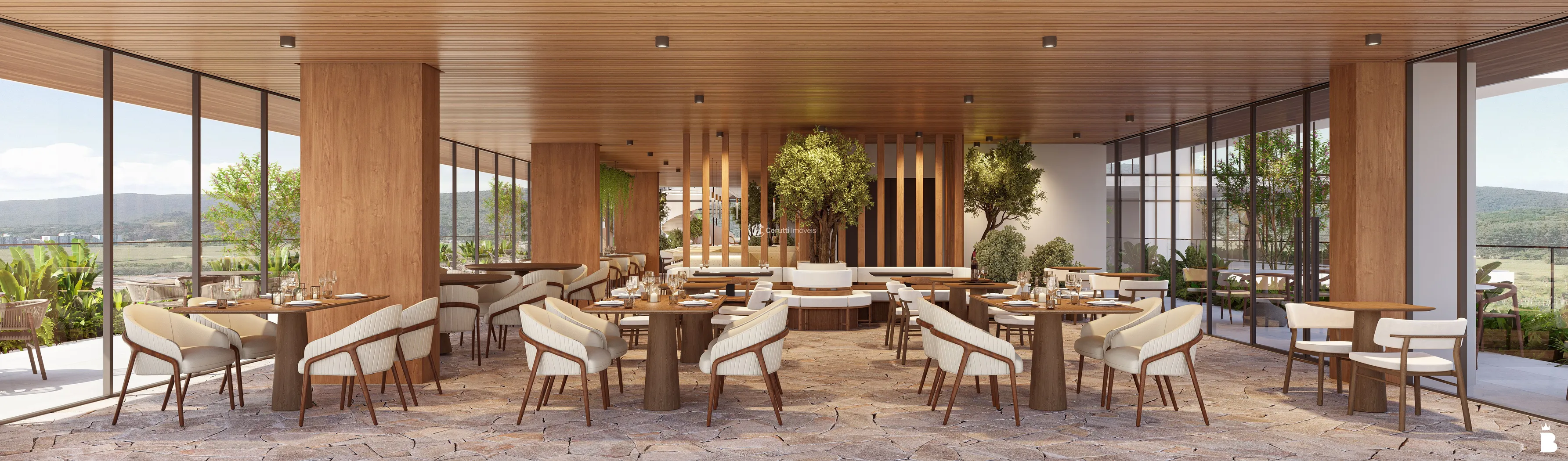 - Ambientes Flexíveis e Versáteis: Um Living elegantemente projetado para recepção de clientes ou como áreas de convivência que estimulam a colaboração e o bem-estar da equipe.