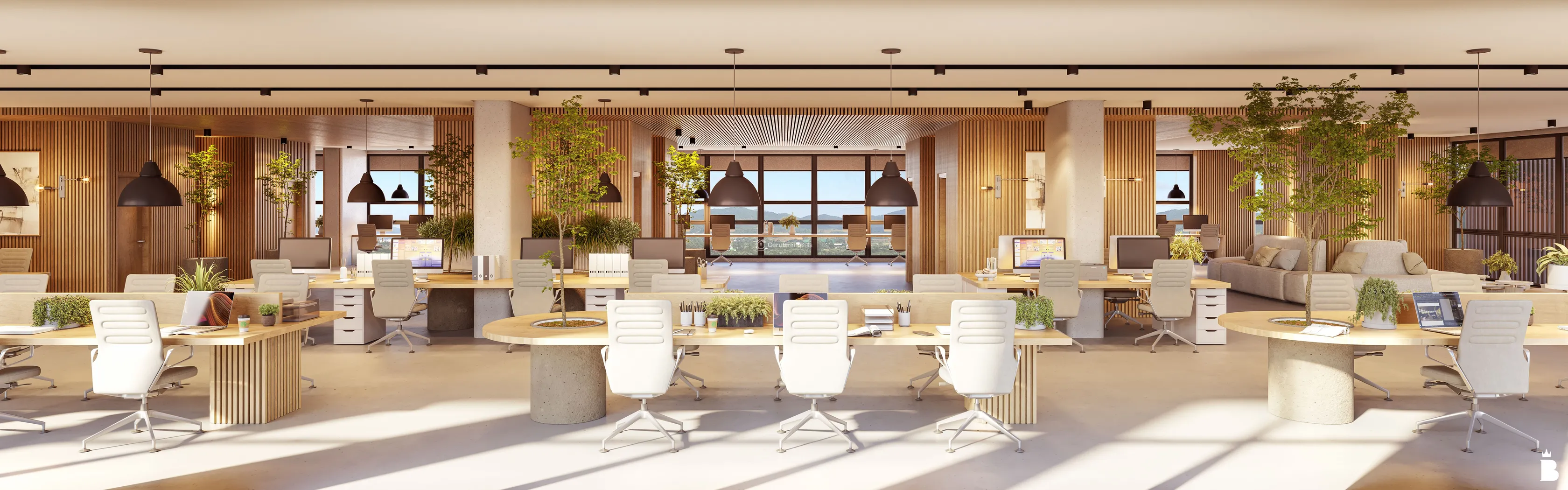- Escritório Privativo: Espaços dedicados para foco e concentração.